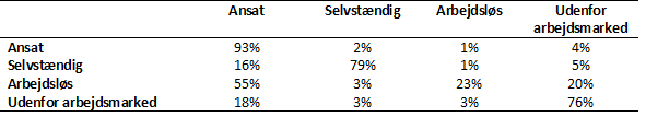 Note: ’Udenfor arbejdsmarked’ er noteret som ’inactive’ i undersøgelsen uden nærmere præcision.